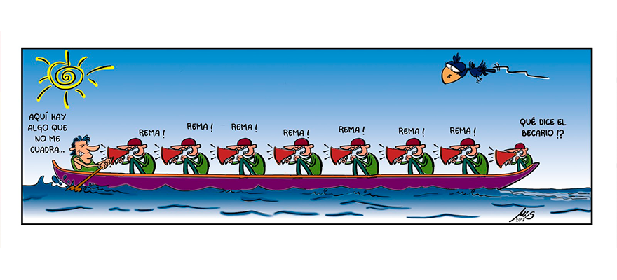 Hemos acordado, asimismo, que el próximo año el remero sea de los que se encuentran en Comisión de Servicios, toda vez que a partir de la vigésimo quinta milla marina se viene observando cierta dejadez en el remero, el cual tiene plaza en propiedad, rozando el pasotismo en línea de meta.
